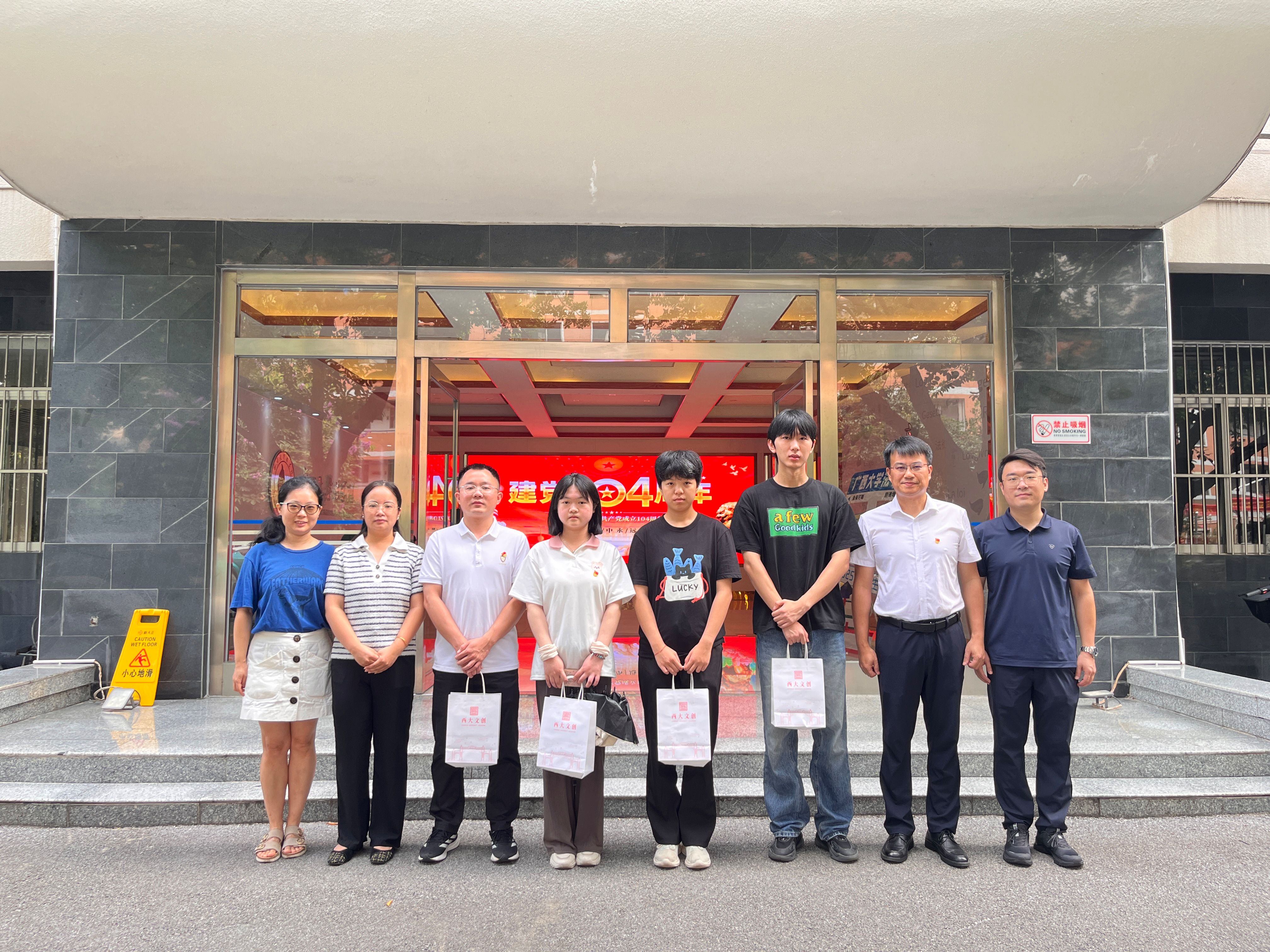 为庆祝中国共产党成立104周年,传承党的光荣传统和优良作风,进一步增强党组织的凝聚力和向心力,7月1日,万象城allwincity官网党委书记余云宇、院党委副书记韦兴剑、副院长熊超、院团委书记申孟鑫、专职组织员蔡舒姝等,走访慰问师生党员,向他们送去党组织的关怀与温暖。