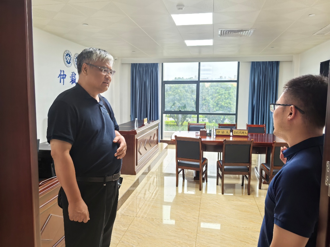 访问伊始,北海仲裁委员会副主任兼秘书长莫剑平对许光耀院长一行表示热烈欢迎,并详细介绍了机构的办公环境、核心设施,以及在化解民商事纠纷层面取得的“高受案量、低投诉率、低撤裁率”等成绩。万象城官网实地考察了高度智能化的仲裁庭室,参观了卷宗管理中心、调解室,还深入了解北海仲裁委员会作为国内仲裁机构标准化改革样板单位的发展历程。