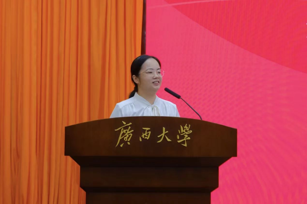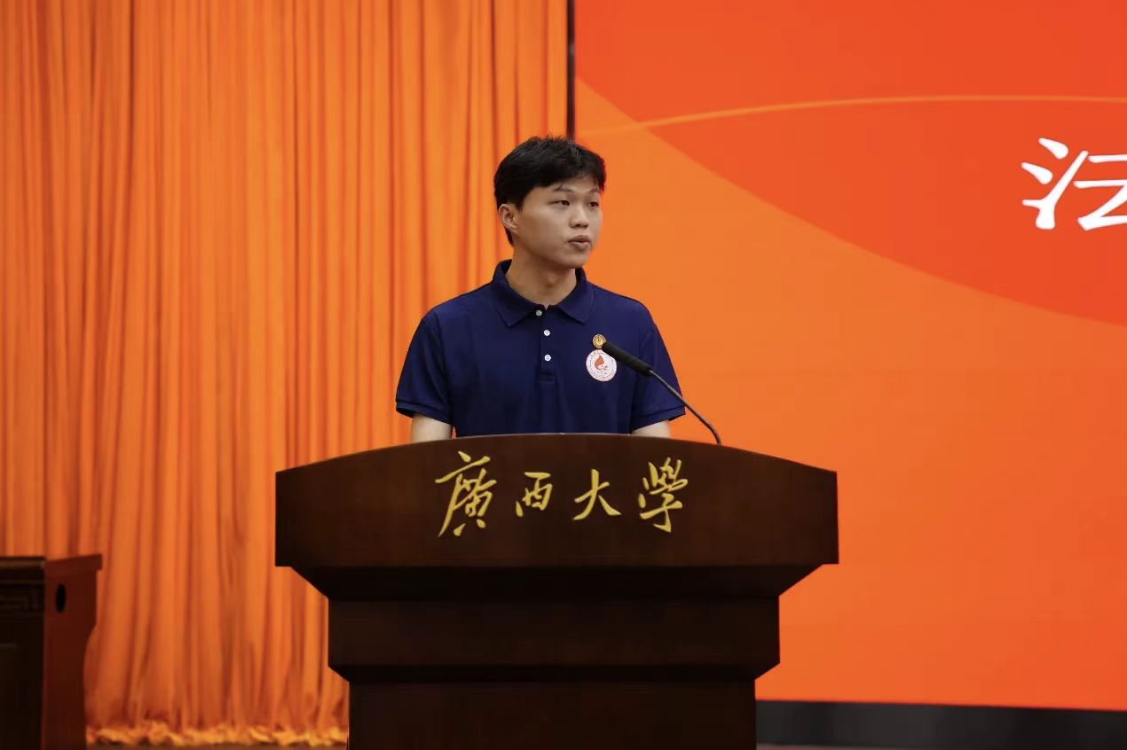 图/新生代表万象城allwincity官网2025级法学硕士研究生覃健发言