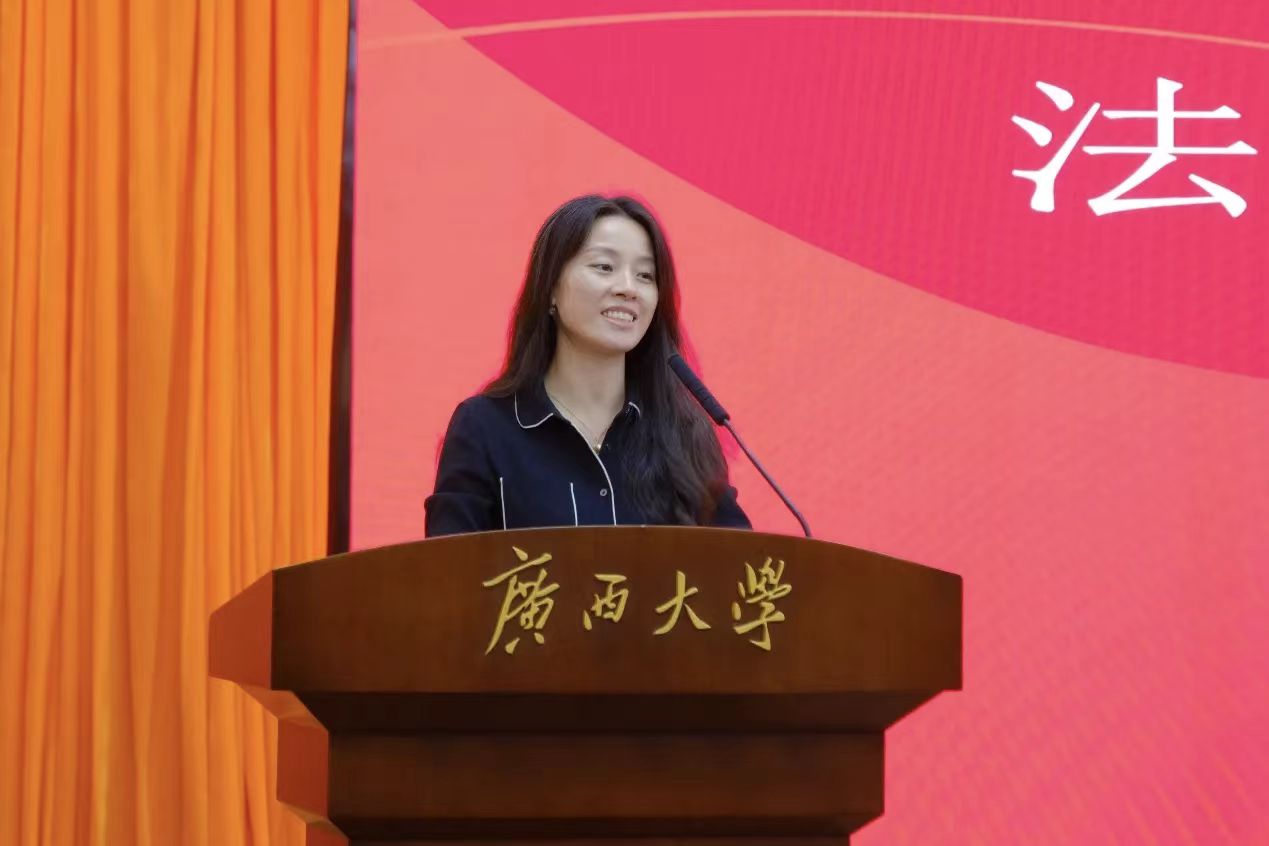 教师代表刘旭老师在发言中引用学界经典案例,结合法学专业特色与学术前沿,为新生们搭建起从校园到专业领域的认知桥梁,既传递了对新生的殷切期望,也表达了学院教师将全力助力同学们成长成才的决心,鼓励新生在学习生活中积极与师长沟通,主动破解难题、提升自我。