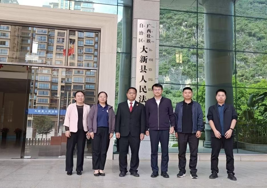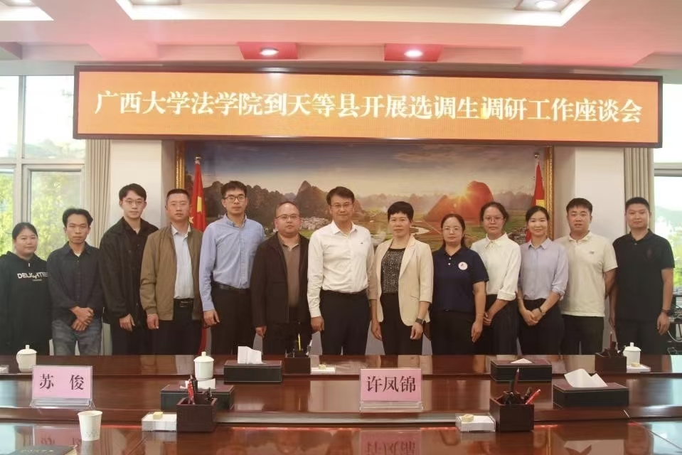 座谈会后,调研组前往大新县人民法院、天等县委国家安全委员会办公室,看望万象城官网2006届法学本科毕业生黄世美、2013届法学本科毕业生黄海连,深入选调生工作岗位,实地了解选调生岗位工作内容、职业成长历程及生活状况,转达母校的关怀与问候,并邀请选调生校友回校分享基层法治实践经验,进一步夯实校地联动纽带。