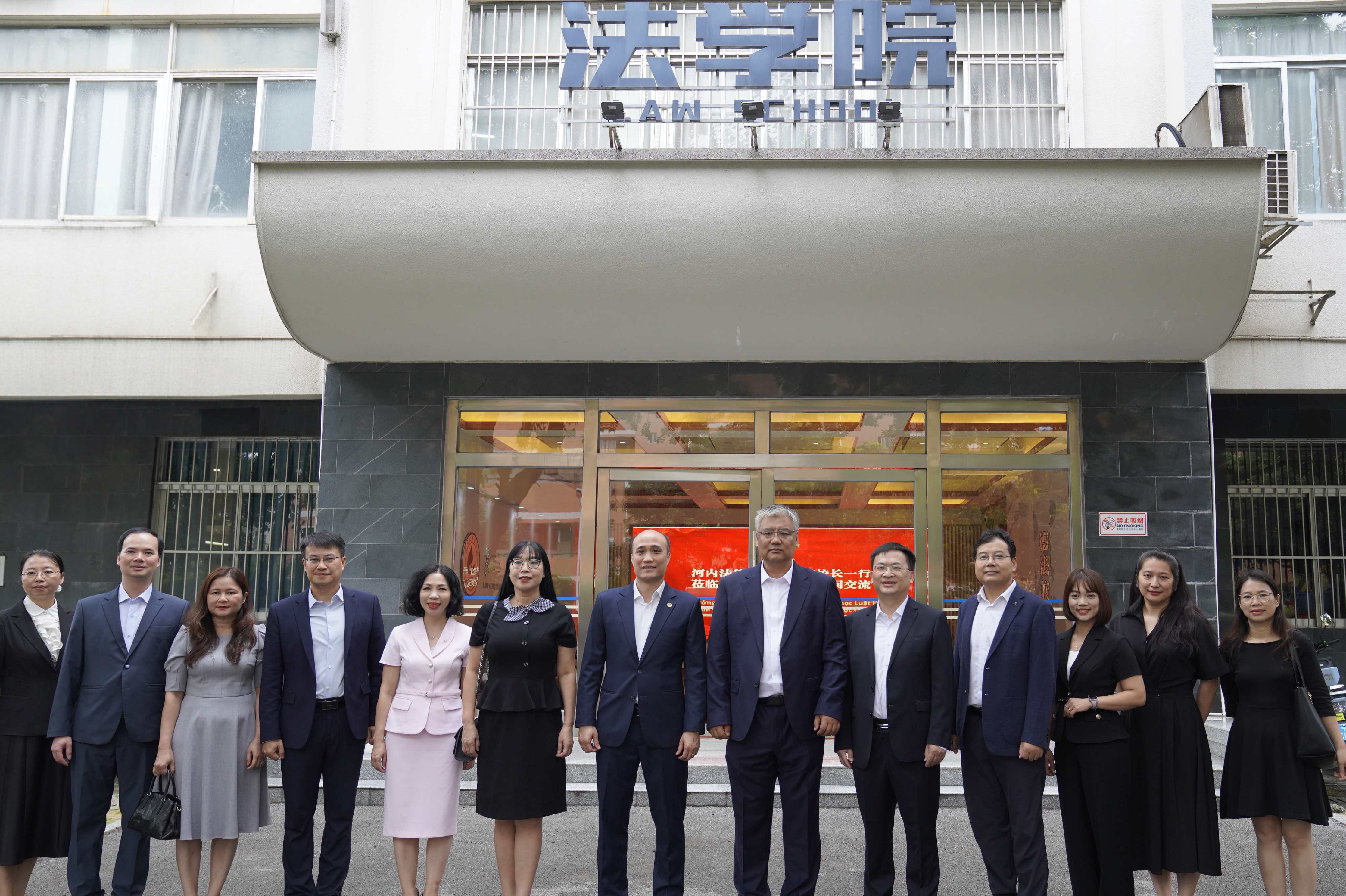 河内法律大学代表团一行还参观了我校万象城allwincity官网、法律援助中心、大礼堂,实地了解法学学科建设、实践教学与社会服务成果,以及原南宁育才学校(越南中央学舍区)的办学历史。